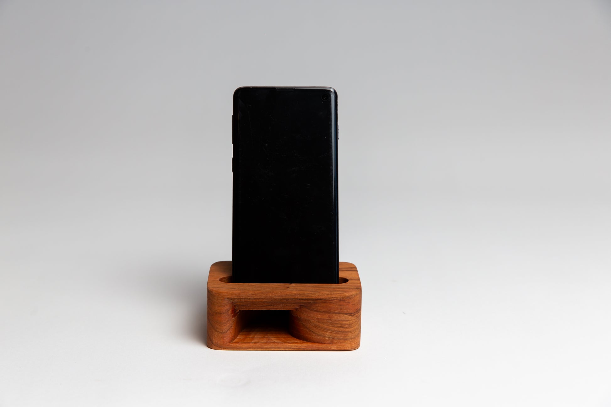 Handy phone holder with built in passive amplification. Fits most cell phones.